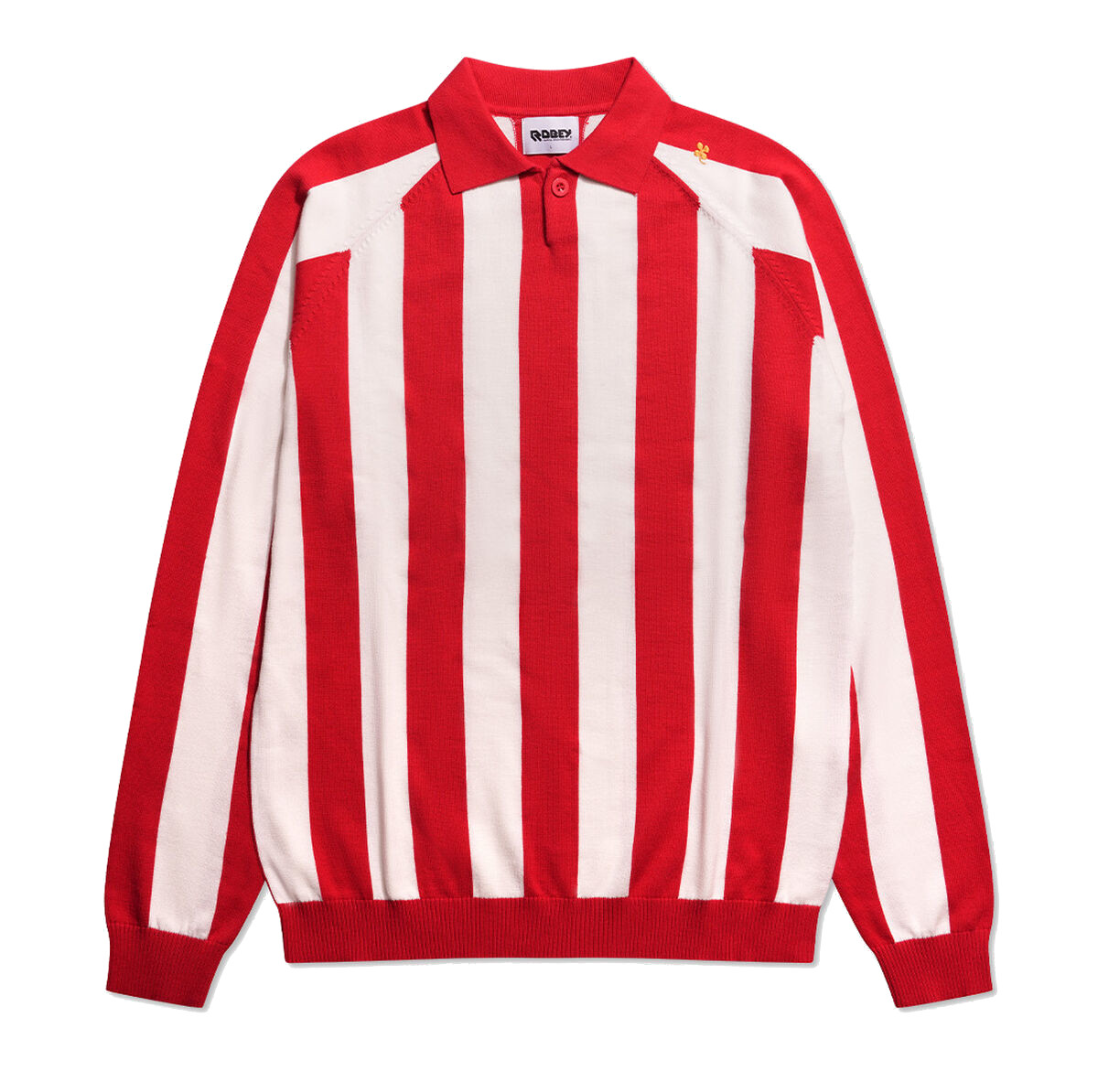 Maillot de football rétro tricoté de Robey Sportswear pour adultes. Ce maillot de football tricoté est rayé rouge et blanc et s’inspire des maillots de football du Sparta Rotterdam. Le maillot Robey Knit se distingue par ses bandes rouges et blanches. Il est également doté d’un col polo rouge et d’une encolure avec bouton. Sur l’épaule gauche se trouve un trèfle à quatre feuilles doré. Taille normalement. Nous vous conseillons de commander votre taille habituelle. Ce maillot rétro est fabriqué en 100 % coton doux.